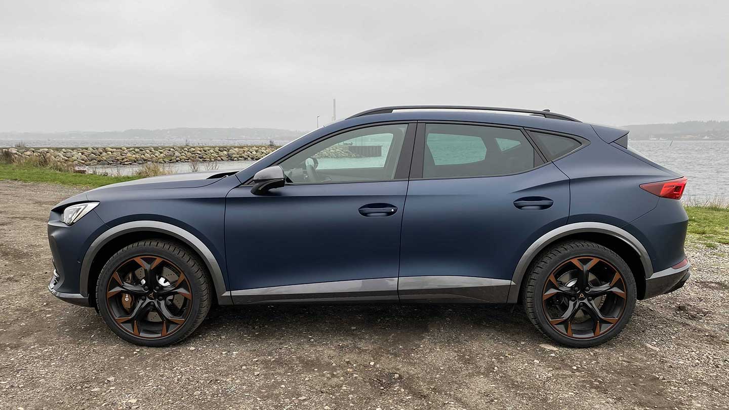 CUPRA begrebet er som du helt sikkert ved ikke nyt, men hvor det før var SEATs sportslige variant af en eksisterende SEAT model, så bliver CUPRA nu markedsført som et selvstændigt mærke, hvor Formentor er første model uden et direkte SEAT sidestykke. Det er i sig selv ret spændende og jeg kunne mærke medtrafikanternes øjne var rettet mod bilen. Til dels fordi Formentorens ydre er alt andet end anonymt, men lige så meget fordi bilens designsprog er utroligt smagfuldt-dramatisk udført. Der er mange detaljer på Formentorens ydre, der kan fremhæves. Især hvis farvevalget falder på ét af de to matte farvemuligheder der kan vælges. Så kommer bilens linjer for alvor til live!